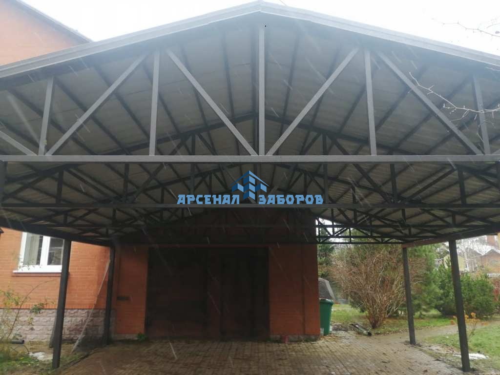 Стандартные характеристики каркаса навеса: столбы 80х80х3мм.